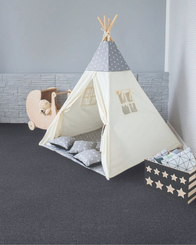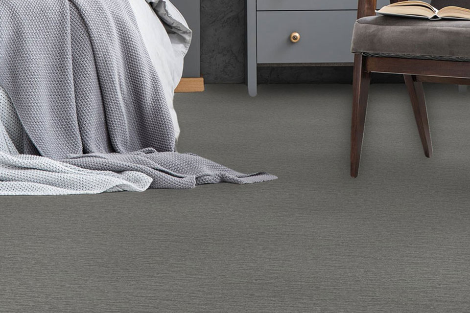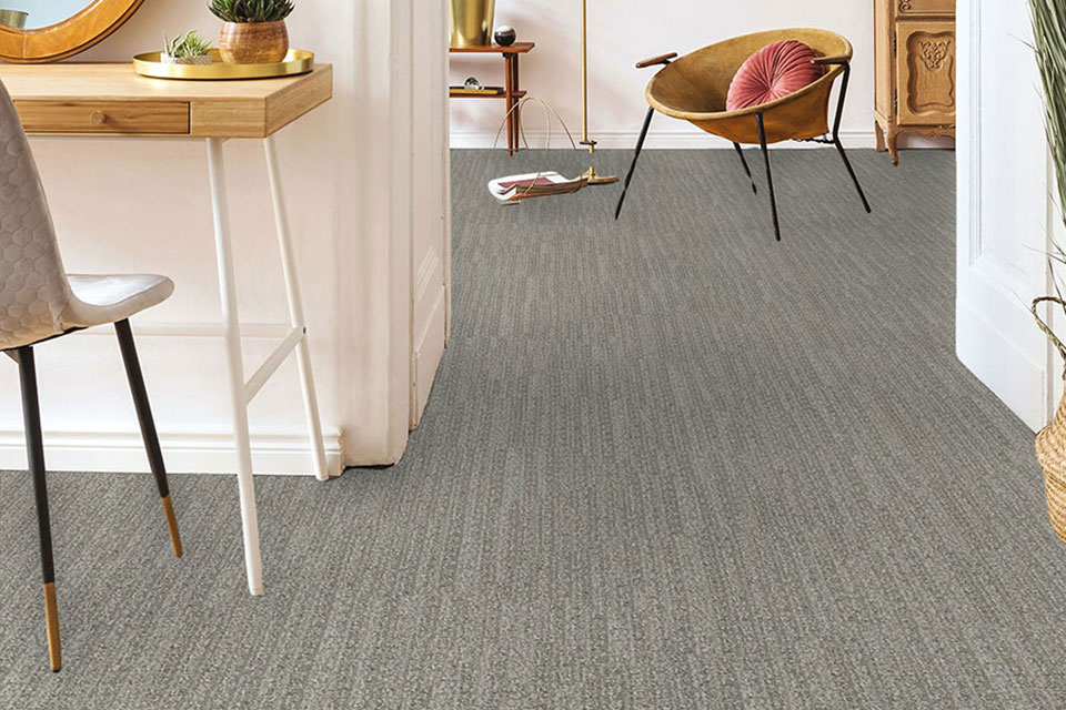 This year, bolder carpet patterns and styles are on the rise when it comes to top flooring trends. Making a statement with carpet is the perfect way to elevate a home’s style and appearance, and there’s no better way to do that than with a pattern or unique color. Try multi-dimensional octagons, squares, or lattice for a more modern look, or go simple with curved lines. For the perfect combination of pattern, color, and softness, check out the beige carpet pictured below (top). The arabesque shape achieves a trendy appearance for a flooring product that will wow any guest. Plus, its neutral color checks the box for our neutral carpet color trend, too! Not looking to go too over the top but still want a unique look? Try a bolder, darker neutral, like the carpet pictured below in a deep gray color with flecks of lighter fibers. It would surely add a moody, one-of-a-kind element to any space.