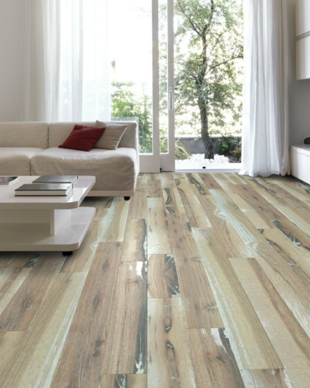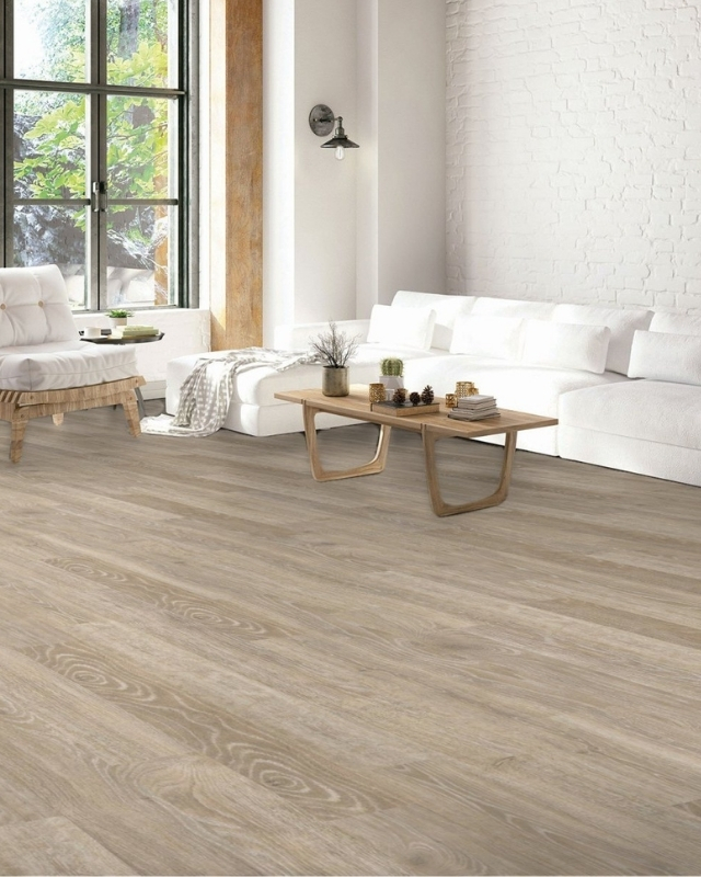 Arguably just as beautiful but unique in its own right, a wood-look laminate (pictured below) shows off just the right amount of wood graining and raw wood character with its convincing wood-look appearance. This laminate flooring is a favorite for 2021 because of its ability to be installed in accident-prone homes or homes with children.